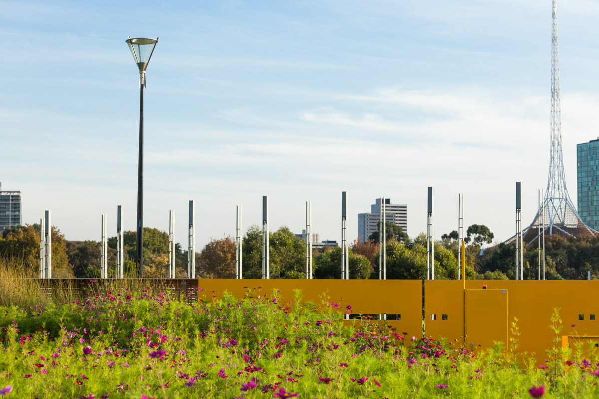 The first project to emerge was a remake of the upper terrace of the park. In collaboration with Cardno, Urban Initiatives worked on the integration of large-scale stormwater harvesting infrastructure into the park. This system captures, treats and stores for re-use approximately 35 million litres of stormwater annually (runoff from 37 hectares of Melbourne’s CBD). It is a high-output system with a well-designed and relatively small footprint of 100 square metres of surface area.