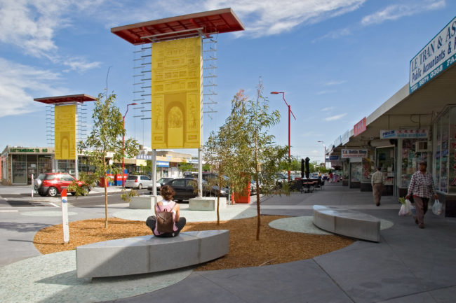 Working with public artist Patti Wong and consulting with the City of Greater Dandenong Council and the community, an agreed plan was developed which responded to the specific needs of traders and the local Vietnamese community. The consultation process and subsequent plan acknowledged the influence of the cultural identity of this community in a contemporary way and avoided preconceived ideas of how heritage and culture should be portrayed. The plan also identified possible future improvements beyond the study area to enhance the functionality, amenity and atmospherics of the Springvale Activity Centre.