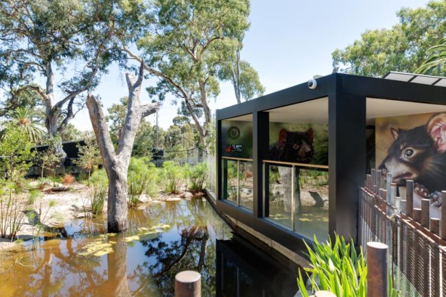 Stage 2 ‘Leopard Ridge’ included Coati, Snow Leopards, Sumatran Tiger, Tasmanian Devils and the expansion of the African Wild Dog Exhibit. These exhibits forefront world-class animal enrichment by actively engaging the animals, maximising choice and encouraging natural behaviours. Exhibits were set amongst significant existing trees and re-purposed site elements including rockwork and the lake. Local artists were commissioned to convey conservation messages through street art that gives the area a distinctly ‘Melbourne’ feel.