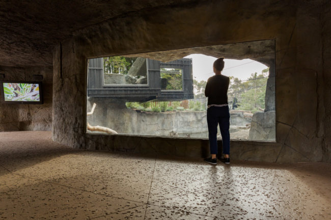 - One-way glass encourages full use of exhibit space by the animals by reducing awareness of visitors.