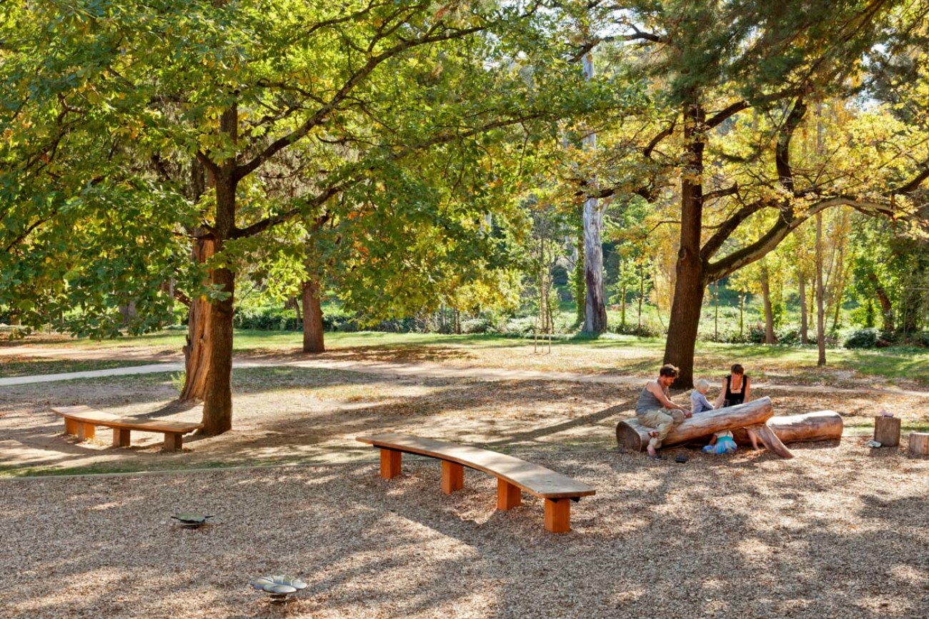 Central to the design of the Castlemaine Botanical Gardens playspace was a desire to stimulate both physical and imaginative play. Effective community consultation led to the design of the customised elements, whose themes are informed by the area’s gold mining history and the ‘pleasure garden’ setting of the site, rich material for enthusiastic visitors.