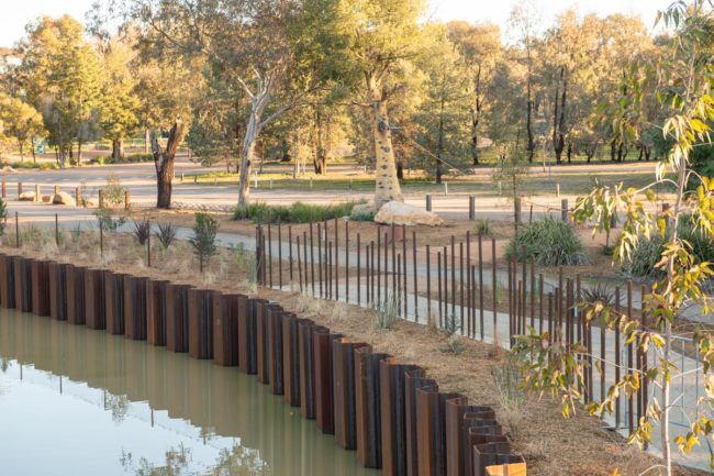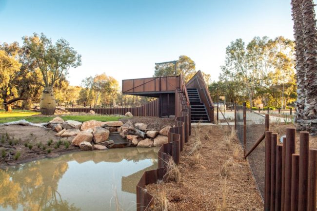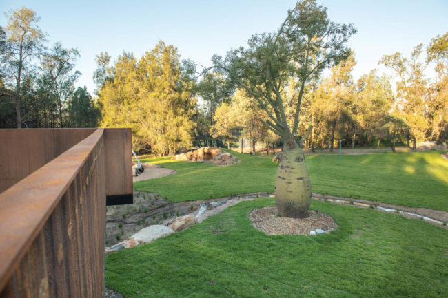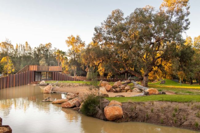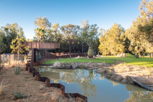 This immersive landscape was enhanced by feature planting. Mature transplanted Brachychitons and palm trees announce the visitor entry to the exhibit and provide visual separation from the nearby circuit road. This highly crafted project balanced consideration of environmental systems, water health, materials, animal welfare, visitor and keeper requirements. The resulting ‘Gateway to Africa’ exhibit moves beyond the purely aesthetic or functional, convincingly integrating the two.