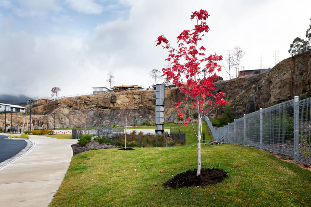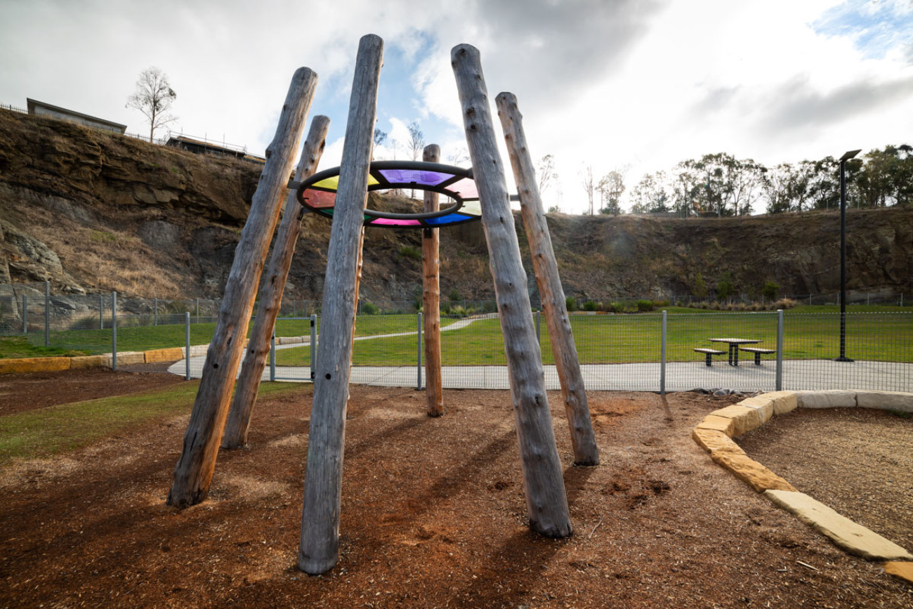 The new neighbourhood play-space has become the centrepiece of the project. Activating the space, it incorporates both passive and dynamic play elements. A well-loved highlight is the ‘play quarry’, which provides the opportunity to dig for ‘fossils’ in the crushed limestone gravel alongside the striking reminders of the site’s significant role in the construction of the history of Hobart.