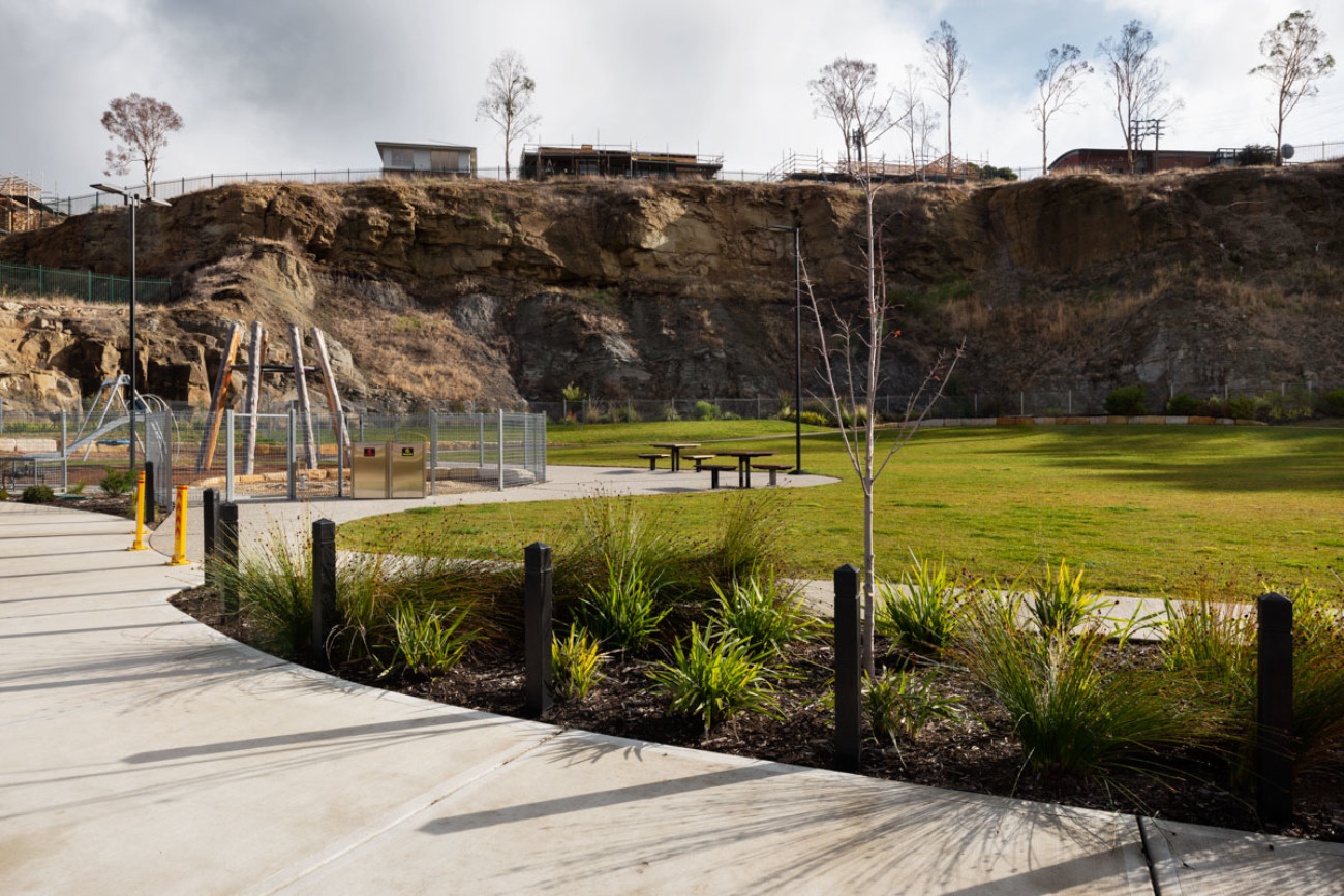 Urban Initiatives took to the consortium the concept of developing a ‘whole of site’ masterplan, inspired by both its natural and industrial heritage. The proposal was to transform the setting into a rehabilitated ‘quarry park’ and nature play-space. The design would integrate the salvaged, unique, industrial structures on site which include an early 20th century ‘crusher’ and a furnace chimney, and establish a heart for the new people-centred neighbourhood.