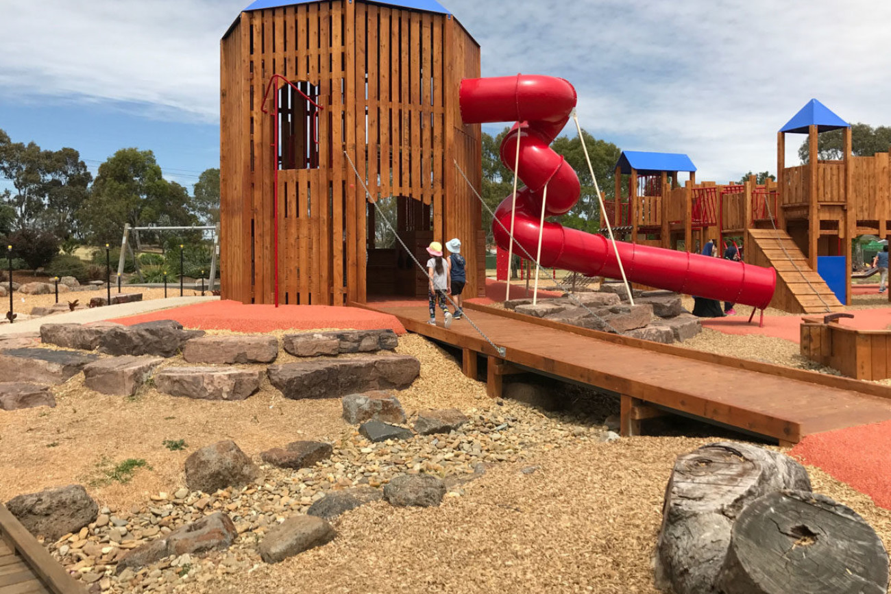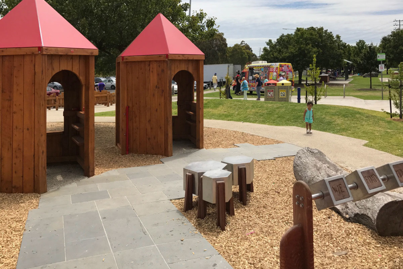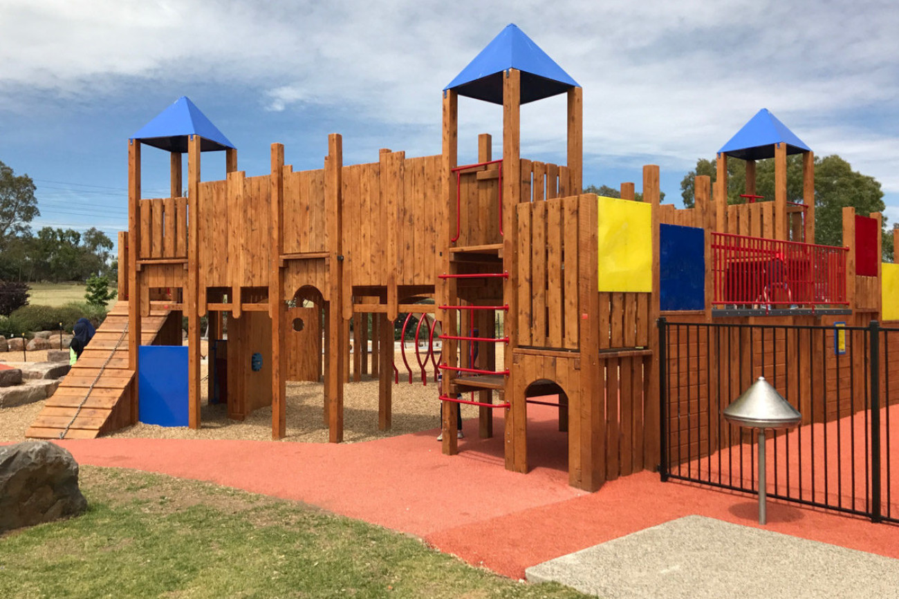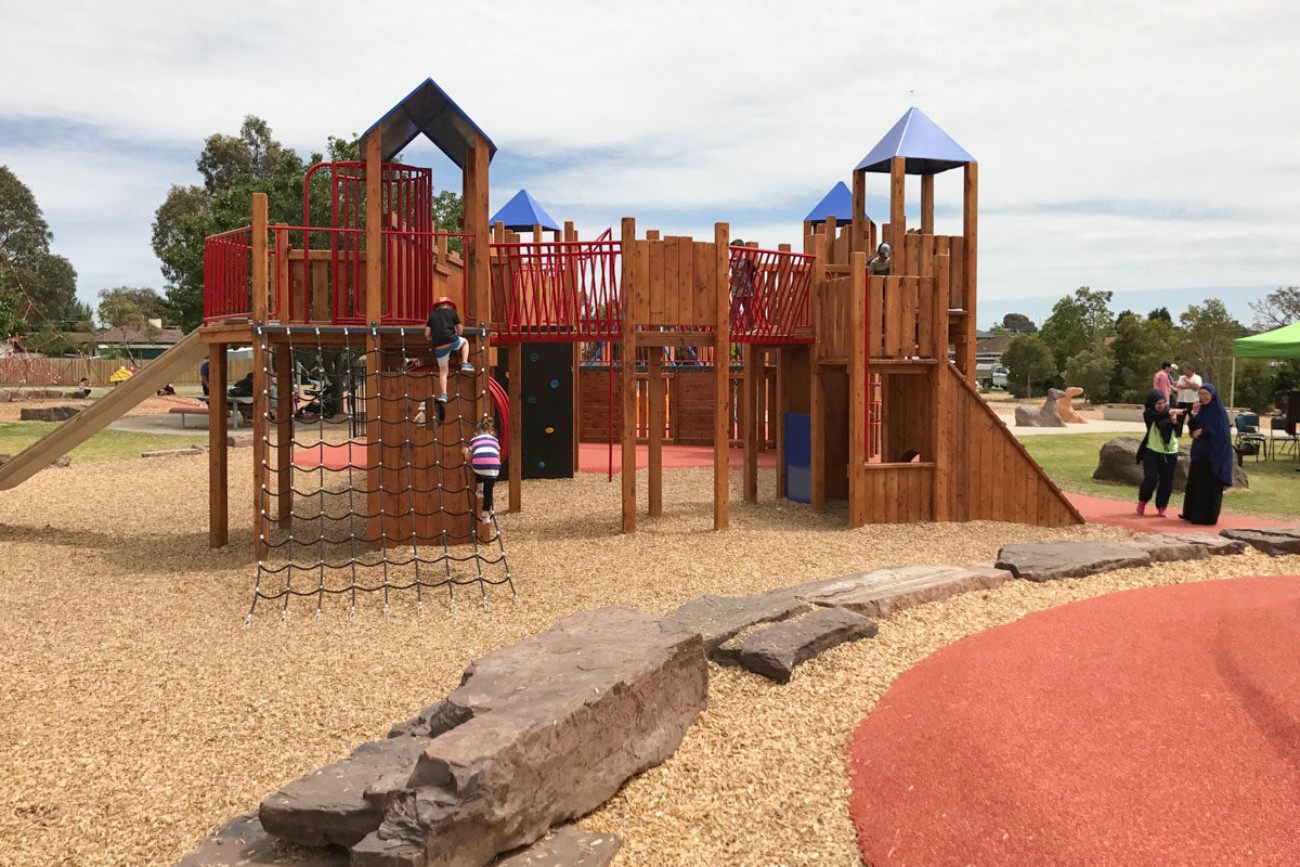 The Jack Roper Reserve is a much-loved and very popular urban parkland and playspace in Broadmeadows. Through extensive community engagement, Urban Initiatives was able to create an engaging playspace for all age groups and abilities using inspiration from a previous castle play structure.