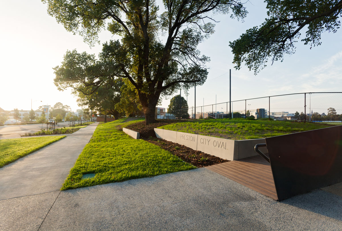 The permeability of the formerly-fenced Oval in a part of Melbourne distinctly lacking open space, returned the landscape to the public realm and repositioned it as a new green ‘gateway’ through to central Preston.